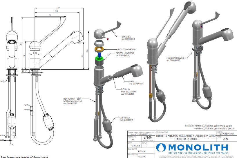 Смеситель с краном Monolith R0201020206 - профессиональное сантехническое оборудование итальянского производства, предназначенное для интенсивной эксплуатации на кухнях предприятий общественного питания: ресторанов, кафе, столовых, пекарен, а также на объектах торговли и пищевых производствах. Модель обеспечивает надёжную подачу и качественное смешивание горячей и холодной воды, полностью соответствует строгим требованиям к гигиеничности, эргономике и износостойкости в условиях круглосуточной рабочей нагрузки.