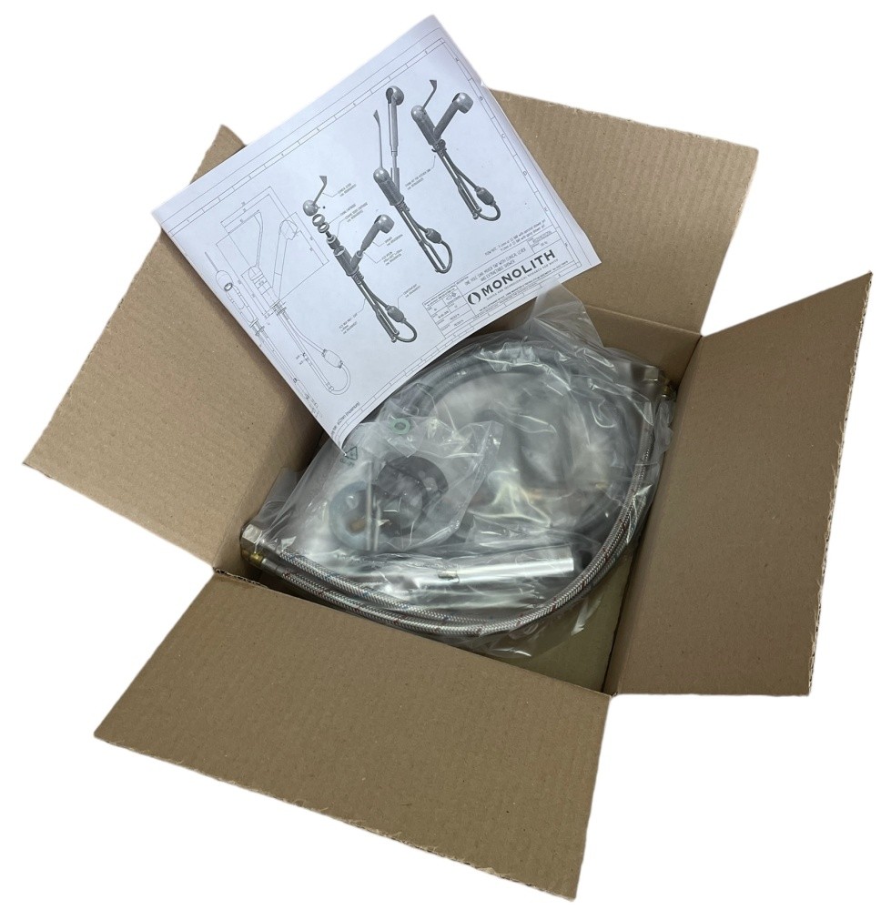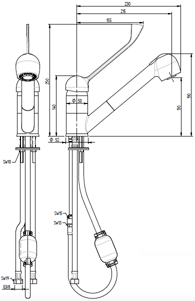 Смеситель Monolith R0201020206 монтируется непосредственно на мойку, что позволяет: оптимально организовать рабочее пространство, обеспечить удобный доступ к воде в зоне мойки, повысить эффективность выполнения типовых операций (наполнение ёмкостей, мойка посуды). Ключевые элементы конструкции: однорычажный механизм управления с пластиковым рычагом - даёт возможность одним движением регулировать напор и температуру воды, выдвижная лейка длиной 1200 мм - позволяет локально направлять поток воды, облегчая мытьё крупногабаритной посуды и труднодоступных участков мойки, поворотный носик с радиусом вращения 230 мм - обеспечивает широкий охват рабочей зоны. корпус из нержавеющей стали - гарантирует высокую прочность, устойчивость к коррозии, механическим повреждениям и длительному контакту с водой, хромированное покрытие - защищает от агрессивных моющих средств, упрощает очистку и поддерживает эстетичный внешний вид, гибкая подводка длиной 350 мм в комплекте - облегчает подключение к водопроводу.Технические характеристики Смесителя с краном Monolith R0201020206