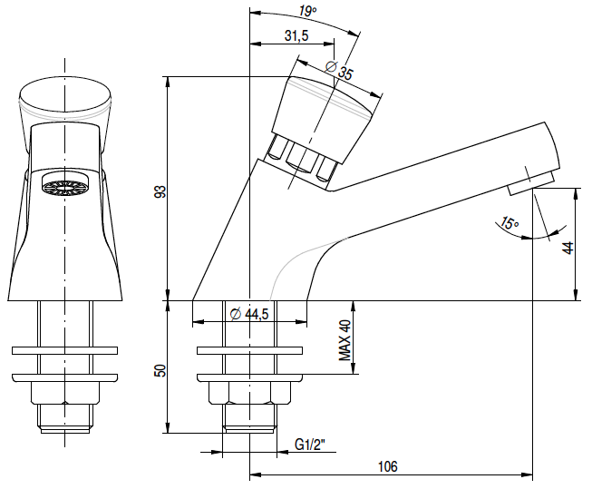 - тип крана: самозакрывающийся (время потока: 8–12 сек)