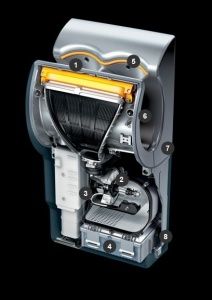 Сушилка для рук автоматическая без нагрева воздуха высокоскоростная. Уровень шума - 85 Дб. Время работы после извлечения рук - 1 с. Гарантия на двигатель - 5 лет или 350000 операций. Принцип действия: воздух из помещения всасывается вентилятором, проходит через специальный, соответствующий медицинским параметрам очистки НЕРА фильтр, который уничтожает 99,9% микробов и бактерий, улавливает 99,5% микрочастиц. Обеззараженный воздух, по пути охлаждая электронные узлы и компоненты, доходит до вентилятора, который направляет его по двум шумоизолированным воздуховодам к выходу. Здесь воздух выдувается через узкие, шириной 0,3мм, щели по всей длине аппарата, со скоростью 640км/ч. Два плоских потока воздуха буквально срезают воду с рук. Электродвигатель с цифровым управлением, системой понижения вибрации, ротором с металлическим сердечником без проводов, основан на технологии пульсирующего магнитного поля: 6000 переключений в секунду дают скорость вращения мощного вентилятора 88000об/мин. Инфракрасные датчики автом