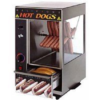 Гриль планетарный для хот-догов штырькового типа с подсветкой, изготовлен из нержавеющей стали и оснащен встроенной подогреваемой камерой для булочек в нижней части аппарата. Загрузка камеры - 12 булочек. Загрузка гриля - 24 сосиски. Мощность камеры - 50 Вт. Размер выдвижного поддона из нержавеющей стали для булочек - 150х254х102 мм. Гриль прозрачен с трех сторон, так как боковые панели выполнены из закаленного стекла, имеет цветную надпись Hot Dogs и оснащен плавной регулировкой температуры.