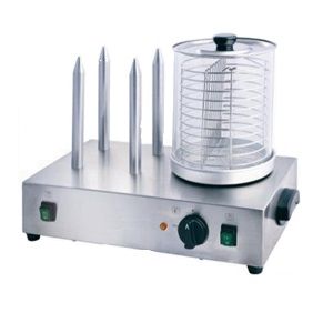 Модель оснащена паровой баней для варки и хранения в горячем виде сосисок, а также четырьмя нагреваемыми штырями для подогрева булочек изнутри. Идеально подходят для оснащения уличных точек и заведений быстрого питания.