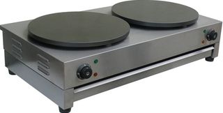 Блинница Kocateq JB2P - электрическая настольная с двумя круглыми жарочными поверхностями диаметром 40 см из теплопроводной низкоуглеродистой стали. Корпус блинного аппарата из нержавеющий стали AISI430. Специально обработанная жарочная поверхность, исключающая проникновение теста и продуктов его термического разложения в верхний слой металла. Источник нагрева - контактный ТЭН. Рабочая температура от +60 до +300 градусов Цельсия. Световые индикаторы, показывающие наличие напряжения и его подачу на ТЭН. Блинница оснащена аналоговым термостатом, сигнальным индикатором. Снабжен выдвижным подогреваемым ящиком, где можно кратковременно хранить готовые блины.