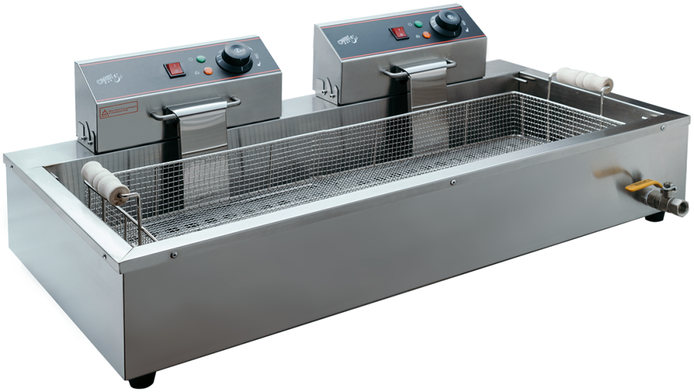 Ключевое преимущество модели Crazy Pan CP-BEF26 - мощная двухгрупповая система нагрева (суммарная мощность 7,8 кВт), вместительный объём ванны (28 л), продуманная комплектация и надёжная конструкция из нержавеющей стали. Чебуречница быстро разогревает масло, упрощает процесс жарки, минимизирует расход фритюра за счёт системы стекания излишков и обеспечивает удобство обслуживания благодаря шаровому крану для слива масла.