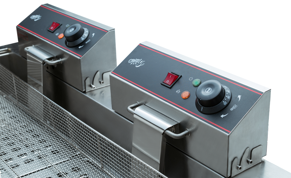 Чебуречница Crazy Pan CP-BEF26 - профессиональное настольное оборудование для приготовления чебуреков, беляшей, пончиков и других изделий во фритюре на предприятиях общественного питания: в ресторанах, кафе, столовых, точках фастфуда и фуд‑кортов. Устройство обеспечивает равномерную обжарку, позволяет готовить блюда крупными партиями и поддерживать высокий темп обслуживания, сочетая производительность с удобством эксплуатации и экономичностью.
