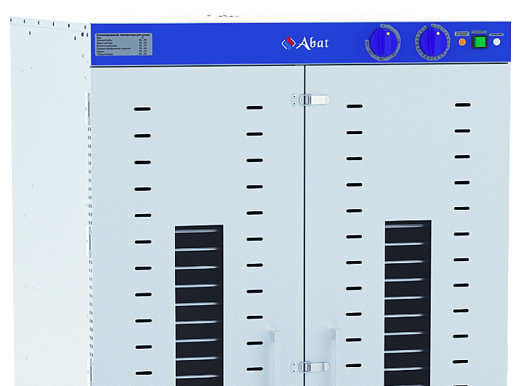 Шкаф сушильный (дегидратор) Abat ШС-32-2Г двухдверный профессиональный для высушивания овощей, фруктов, ягод, грибов, трав, зелени, орехов, мяса, рыбы, пастилы и других продуктов на фабриках кухнях и пищевых производствах. Напольный. Одна камера, две двери. 32 уровня GN 2/1-20 (530х325 мм) или 64 GN 1/1-20 (530х325 мм) / EN 1/1 (600х400 мм). Крашенный корпус.