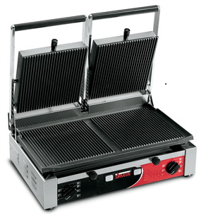 Конструкция - из нержавеющей стали и чугуна, армированные нагревательные элементы, прилегающие вплотную к плите для оптимальной тепловой проводимости, регулируемый термостат до +300 °C.