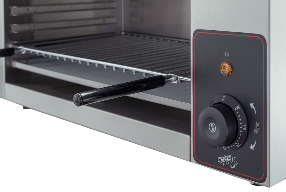 Гриль саламандра Crazy Pan CP-SEG570, это профессиональное оборудование. Оптимальное решение для обжаривания стейков, сосисок, приготовления сэндвичей, разогрева булочек и полуфабрикатов. Модель сочетает надёжность, функциональность и удобство в ежедневной эксплуатации. Подходит для широкого спектра блюд - от стейков до хот‑догов. Регулировка температуры в диапазоне от +50 °C до +300 °C для идеальной прожарки любого продукта. Прочный корпус из нержавеющей стали, устойчивость к коррозии, механическим повреждениям и интенсивным нагрузкам. В гриле Crazy Pan CP-SEG570 подвижная решётка с ручками для удобства загрузки и выгрузки продуктов, и безопасности при работе. С встроенным поддоном простота в уборке и поддержании чистоты на рабочем месте. Компактный настольный формат, экономия пространства на кухне. Надёжная система нагрева, мощный ТЭН обеспечивает быстрый выход на рабочую температуру.