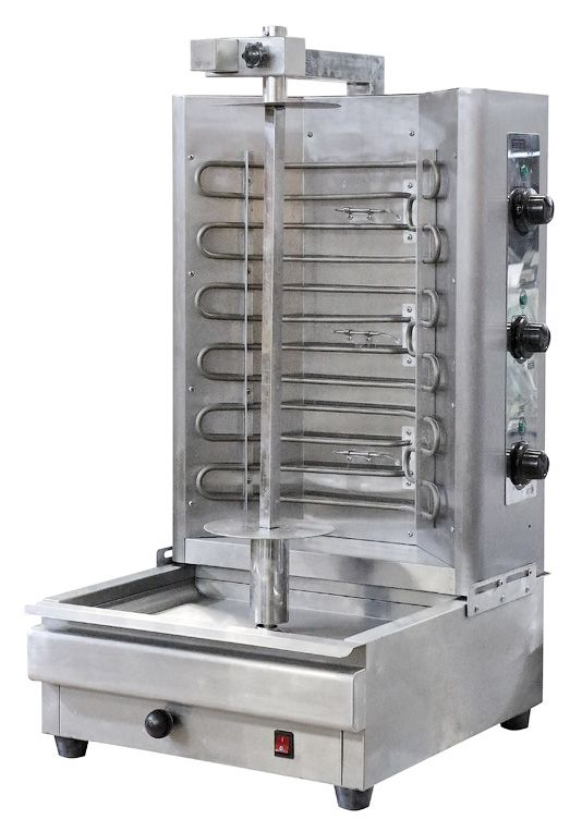 Гриль для шаурмы вертикальный ERGO VZK-890 - электрический, с автоматическим вращением вертела, Подвижные ТЭНы, 3 зоны нагрева, материал корпуса - нерж.сталь
