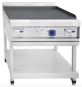 Промышленная жарочная поверхность АКО-90/1П-С-02 с одной сплошной рифленой поверхностью с одной зоной готовки. Элемент модульной электрической тепловой линии Abat 900. Жарочная поверхность из стали с П-образным бортиком предотвращающим разбрызгивание жира и жиросборником. Электромеханическое управление, жиросборник расположены на фронтальной панели. Может устанавливаться отдельно или в составе тепловой линии. Поставляется с подставкой из нержавеющей стали.