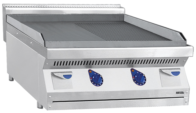 Промышленная жарочная поверхность АКО-80/1Н-С-00 с одной сплошной поверхностью поделенной на гладкую и рифленую с двумя зонами готовки с раздельной регулировкой мощности. Элемент модульной электрической тепловой линии Abat 700. Жарочная поверхность из стали с П-образным бортиком предотвращающим разбрызгивание жира и жиросборником. Электромеханическое управление, жиросборник расположены на фронтальной панели. Может устанавливаться отдельно или в составе тепловой линии. Аппарат может быть установлен на стол или подставку МН-03.
