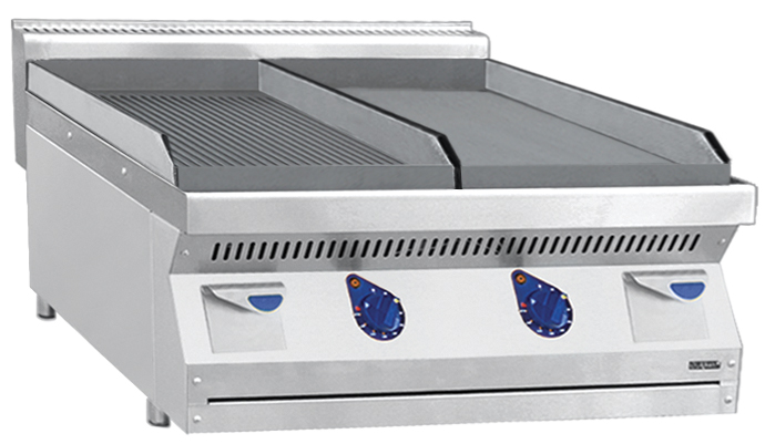 Гриль, жарочная поверхность электрическая Abat АКО-80/2Н-С-00 (21000001750) предназначен для контактной жарки на раскаленной поверхности мясных, рыбных и овощных блюд в кафе, ресторанах, столовых, кулинариях и других предприятиях общественного питания и торговли. Две раздельные стальная поверхность (1/2 гладкая, 1/2 рифленая) с двумя зонами нагрева.