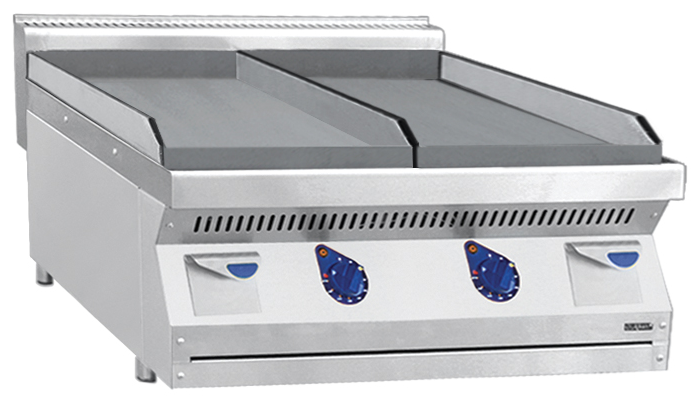 Промышленная жарочная поверхность АКО-80/2Н-С-01 с двумя рабочими поверхностями, гладкой и гладкой с раздельной регулировкой мощности. Элемент модульной электрической тепловой линии Abat 700. Жарочная поверхность из стали с П-образным бортиком предотвращающим разбрызгивание жира и жиросборником. Электромеханическое управление, жиросборник расположены на фронтальной панели. Может устанавливаться отдельно или в составе тепловой линии. Аппарат может быть установлен на стол или подставку МН-03.