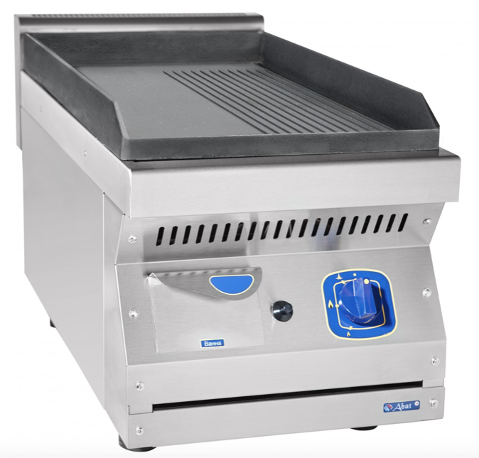 Промышленная жарочная поверхность ГАКО-40/1Н-Ч-00 с одной рабочей зоной и комбинированной поверхностью. Элемент модульной газовой тепловой линии Abat 700. Жарочная поверхность из чугуна с П-образным бортиком предотвращающим разбрызгивание жира и жиросборником. Электромеханическое управление, жиросборник расположены на фронтальной панели. Может устанавливаться отдельно или в составе тепловой линии. Аппарат может быть установлен на стол или подставку МН-02.