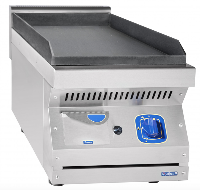 Промышленная жарочная поверхность ГАКО-40/1Н-Ч-01 с одной рабочей зоной и гладкой поверхностью. Элемент модульной газовой тепловой линии Abat 700. Жарочная поверхность из чугуна с П-образным бортиком предотвращающим разбрызгивание жира и жиросборником. Электромеханическое управление, жиросборник расположены на фронтальной панели. Может устанавливаться отдельно или в составе тепловой линии. Аппарат может быть установлен на стол или подставку МН-02.