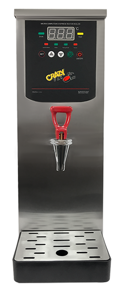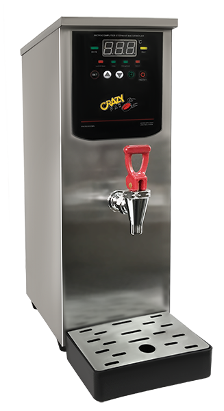 Проточный электрокипятильник Crazy Pan CP-IB22 Silver профессиональный, с таймером, для кафе, ресторанов, столовых, баров, гостиниц и других общепитов. Производительность 22 л/ч (подключение к водопроводу). Электронной управление. Корпус из нержавеющей стали. Цвет стальной. Напряжение 220В, мощность 2,5 кВт (1 ТЭН). Температурный режим: 44-99°С. Размеры: 190x240x520 мм. Вес: 6 кг.