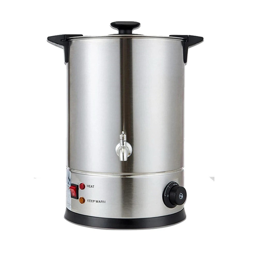 Электрокипятильник Crazy Pan CP-WBH35 объёмом 35 л - профессиональное оборудование для нагрева и поддержания температуры воды на предприятиях общественного питания и торговли: в ресторанах, кафе, столовых, гостиницах, точках продажи горячих напитков и других объектах с высокой потребностью в горячей воде. Устройство обеспечивает быстрый нагрев, стабильное поддержание заданной температуры и удобство эксплуатации при интенсивных нагрузках.