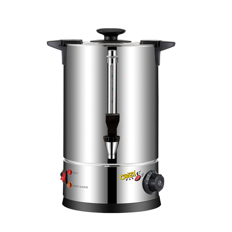Электрокипятильник Crazy Pan CP-WBH15 объёмом 15 л - практичное и надёжное оборудование для нагрева и поддержания температуры воды на предприятиях общественного питания и торговли: в кафе, ресторанах, столовых, гостиницах, точках продажи горячих напитков и других объектах, где требуется постоянный доступ к горячей воде. Устройство идеально подходит для приготовления чая, кофе, бульонов, соусов и иных горячих блюд и напитков, обеспечивает быстрый нагрев, стабильную работу и удобство эксплуатации даже при интенсивных нагрузках.