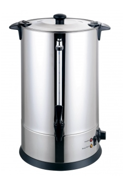 Кипятильник электрический GEMLUX GL-WB-200S - настольный, автономный (наливной), одинарные стенки, емкость резервуара 18 л, закрытый ТЭН, терморегулятор (30-110оС), мерное стекло, сливной кран, нерж.сталь 304