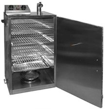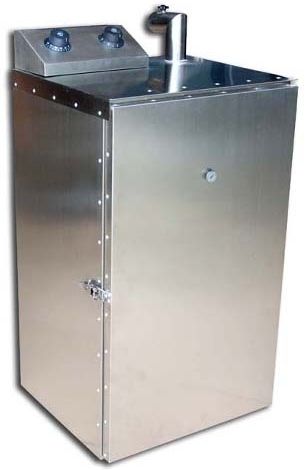 Температурный режим от +37 до +135 °С. Четыре решетки, поддон для воды, 2 ручки управления, таймер. Корпус из нержавеющей стали. Механическое управление. Щепа, предварительно замоченная в воде, загружается в круглый контейнер, который устанавливается на ТЭНы. Происходит тление щепы с выделением дыма.