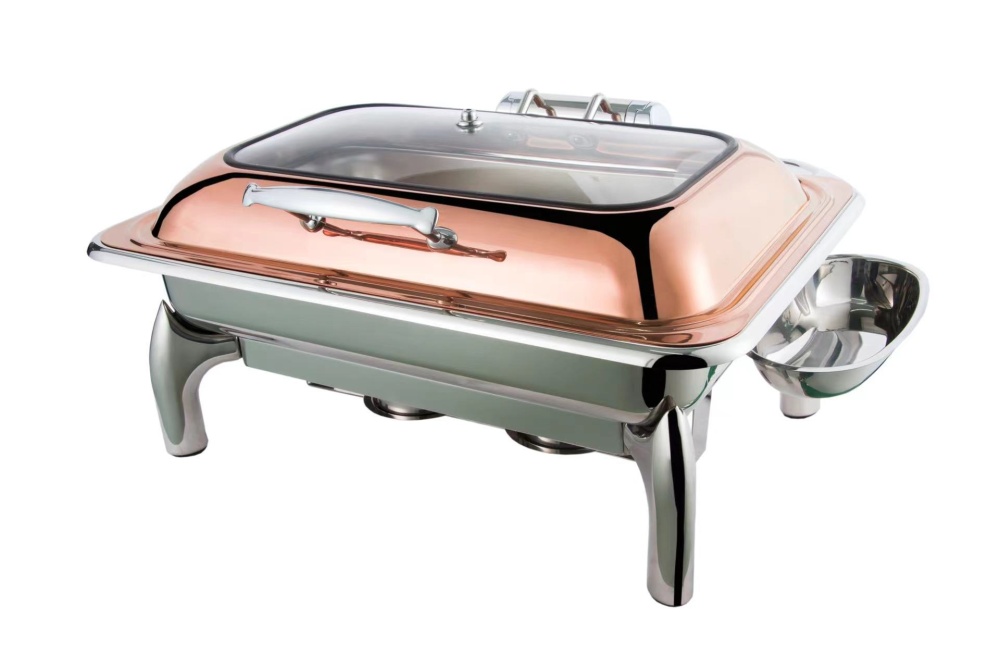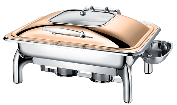 Чафинг-диш Crazy Pan CP-CHD016RG (розовое золото) - профессиональное настольное оборудование для поддержания оптимальной температуры готовых блюд на предприятиях общественного питания и торговли: в ресторанах, кафе, столовых, гостиницах, при организации банкетов, фуршетов и шведских столов. Устройство позволяет подавать первые и вторые блюда, гарниры, соусы и закуски горячими в течение длительного времени без потери вкусовых качеств, сочности и презентабельного внешнего вида, исключая необходимость повторного разогрева и экономя ресурсы кухни.