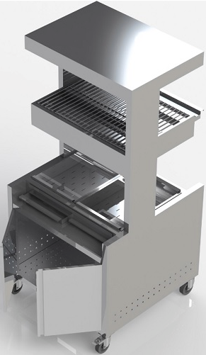 Нерж. сталь 430-1мм; лотки 304-1,5мм; проф. 40*40; 2 полки тепловые+подсветка галлог. лампы 8шт; двери распашные.