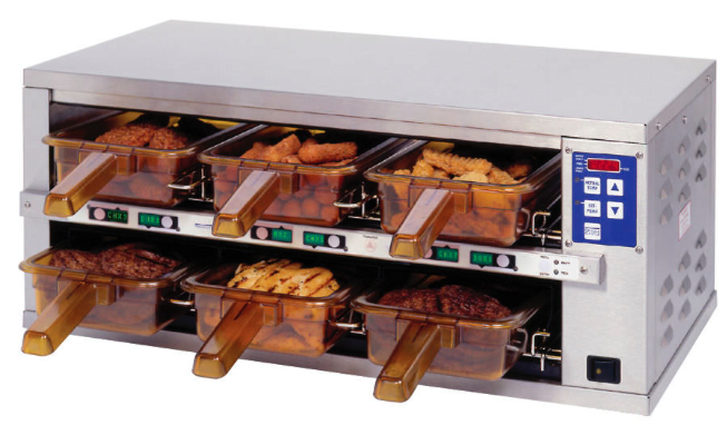 Отдельная регулировка температуры для верхнего и нижнего уровня хранения (65-127С). Встроенные таймеры для каждого лотка.