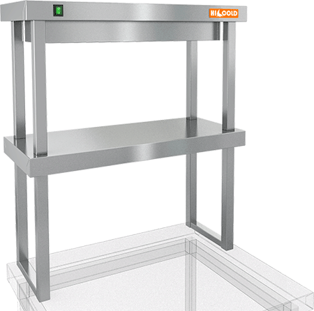 Двухярусная тепловая комбинированная полка HICOLD TP2K-7/4 предназначена для выкладки и поддержания блюд в подогретом виде. Один уровень с подогревом, второй нейтральный. Оборудование выполнено из нержавеющей стали AISI 430.