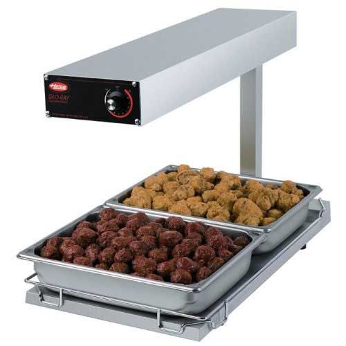 Мармит настольный с верхним инфракрасным нагревательным элементом и нижним подогреваемым основанием предназначен для поддержания в нагретом состоянии готовых продуктов (картофеля-фри, овощей и т.д.) в гастроемкостях высотой 65мм (в комплект не входят). Расстояние между верхним элементом и основанием - 305мм. Легкий и быстрый доступ к продукту осуществляется за счет поворота верхнего нагревательного элемента в сторону. С трех сторон основания предусмотрено хромированное ограждение для гастроемкостей. Корпус изготовлен из алюминия, основание – из нержавеющей стали. В комплекте шнур длиной 1829мм со штепселем.