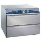 Подогреватель с 2 выдвижными ящиками с системой Halo Heat обеспечивает равномерный нагрев продукта и сохраняет его естественную влажность в течение многих часов без добавления воды. Корпус, направляющие и ящики изготовлены из нержавеющей стали. Панель управления располагается под углом для безопасности. Управление нагревом осуществляется с помощью механического термостата. Стрелка датчика показывает рабочую температуру воздуха в ящиках. Дополнительно можно приобрести электронную панель управления. Каждый ящик оснащен стальной емкостью размером 305х508х152 мм. При необходимости конструкция ящика позволяет адаптировать его к емкости размером 381х508х127 мм. Вместимость ящика - 9 кг (34 запеченные картофелины или 50 булочек). Подогреватель может встраиваться (дополнительно приобретается монтажный комплект) или устанавливаться друг на друга (для этого на верхней панели имеются 4 выступа, т.е. монтажный комплект не требуется). Подогреватель можно установить на стенд с ножками или колесами.