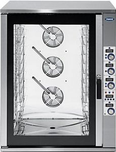 Для 10-ти гастроемкостей GN 1/1. Цифровой таймер. Цифровой контроль температуры. Память для 99 программ приготовления блюд. Регулирование подачи пара в процентах. Охлаждаемая стеклянная дверь. Три реверсивных вентилятора во внутренней камере. Регулирование скорости вентиляторов. Функция добавления 1 минуты приготовления пищи. Электронное управление инжекцией пара. Внутреннее освещение шкафа галогенными лампами. Сердцевидный зонд (щуп).