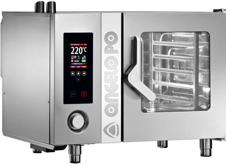 Электрический пароконвектомат Angelo FX61E3 имеет 6 уровней GN 1/1(увеличенная камера позволяет использовать пекарские противни 600х400 мм.). Интерактивная панель управления. Функции приготовления:автоматический разогрев и охлаждение, удержание в разогретом состоянии, разогрев, банкетинг (финишинг), копчение (с внешним модулем). Автоматический контроль уровня влажность воздуха в режиме пароконвекции. ECO программа позволяет снизить расход электроэнергии/газа минимум на 10%. Новая система автоматической мойки SC2. Загрузка-выгрузка данных через интерфейс USB с помощью flash USB (HACCP данные, программы приготовления). 2 скорости вращения вентилятора, включая псевдостатический режим нагрева. Возможность ручного впрыска. Стенки камеры изготовлены из нержавеющей стали AISI304, подсветка камеры с помощью галогенной лампы, регулируемые по высоте ножки из нержавеющей стали AISI304, конвекционный режим с температурным диапазоном от +30 до +300 градусов Цельсия, пароконвекционный режим режим с температурным диапазо