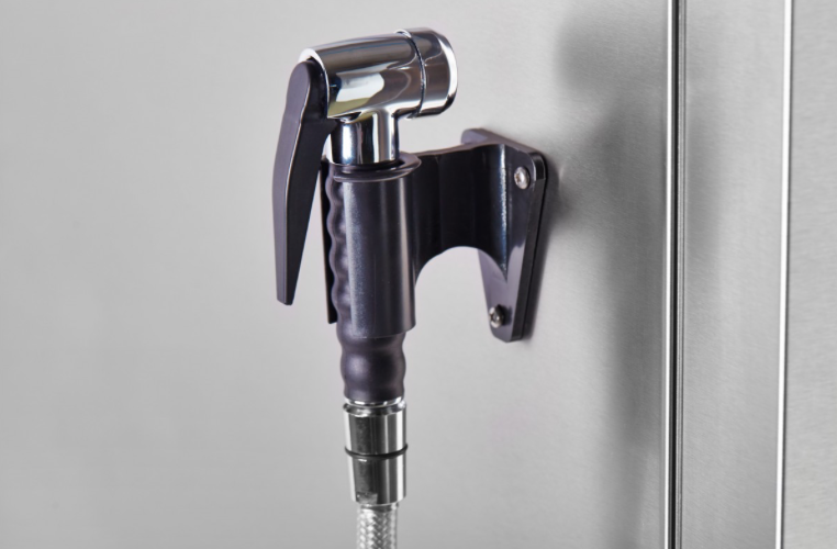 - Двухходовый механизм открывания двери обеспечивает безопасность персонала от воздействия горячего пара.