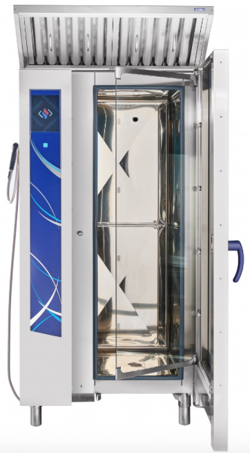 - Двухходовый механизм открывания двери обеспечивает безопасность персонала от воздействия горячего пара.