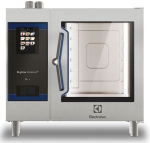 Пароконвектомат электрический бойлерный Electrolux 217750 (ECOE61T2A1) серии SkyLine Premium S, с сенсорным управлением, 6x1/1 GN, 3 режима приготовления (автоматический, рецептурные программы, ручной), автоматическая очистка, бойлер из стали AISI 316, трехфазный.
