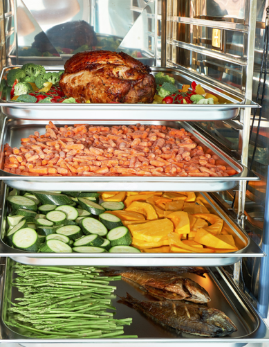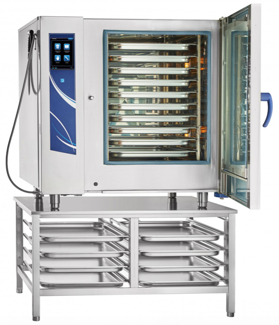 - Продольная загрузка позволяет использовать гастроемкости GN 2/1 (650х530мм) или GN 1/1 (530х325мм).