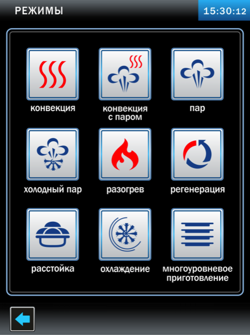 - Автоматика обеспечивает быстрый выход пароконвектомата на рабочий режим.