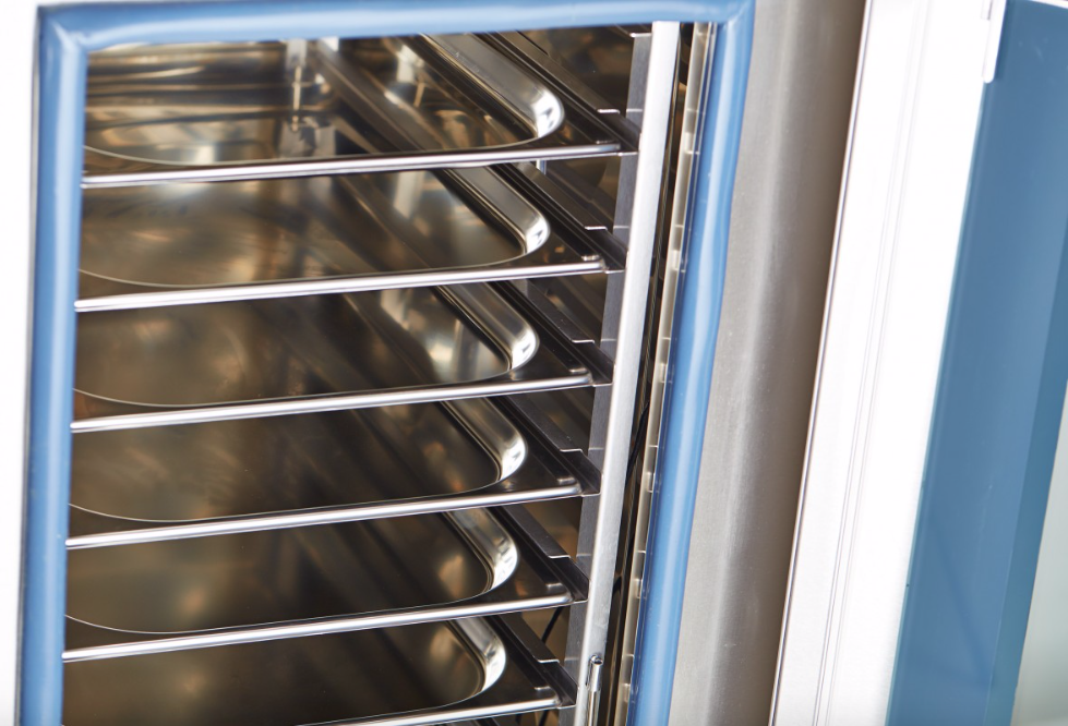 - Продольная загрузка позволяет использовать гастроемкости размера GN 1/2 и GN 1/3.