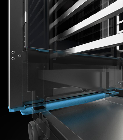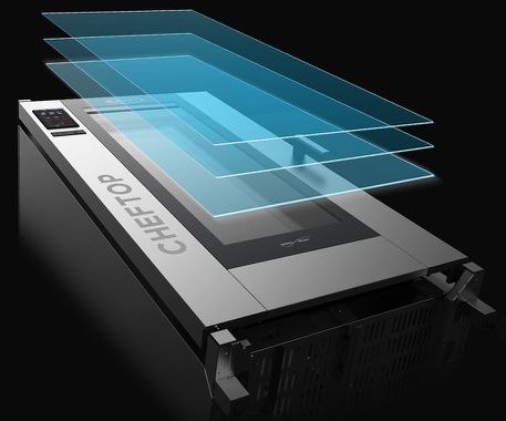 - Интегрированная в дверцу LED подсветка рабочей камеры освещает каждую токи загрузки белым светом не искажающим реальный цвет продукта.