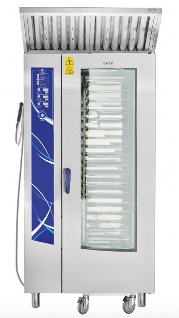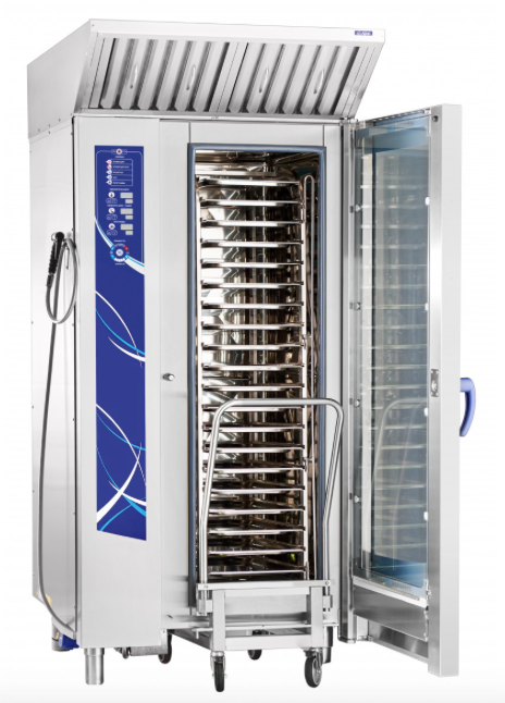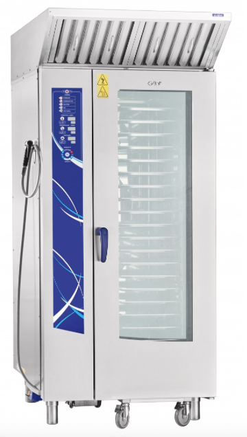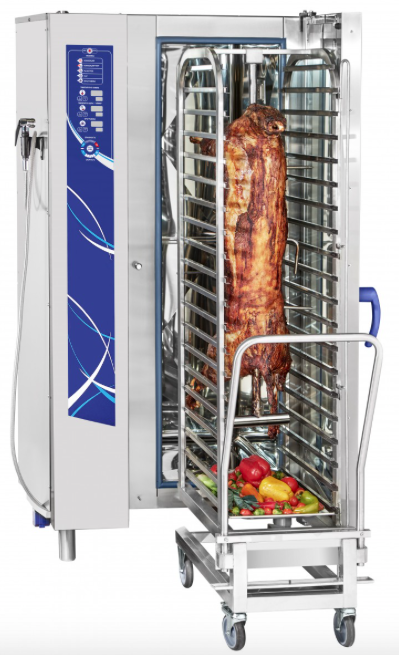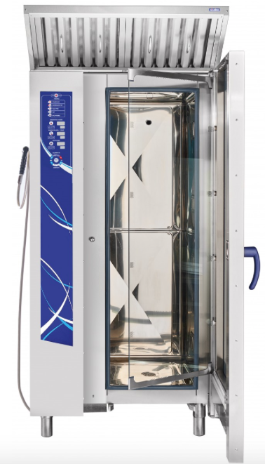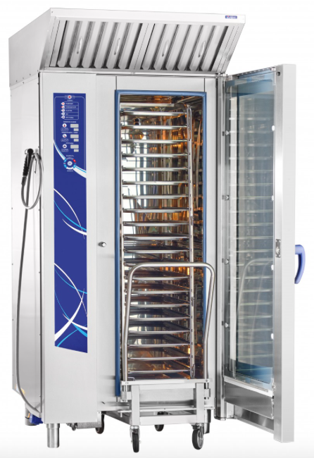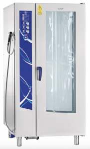 - Конвекция + пар (комбинированный режим, +30...+250 °С). Комбинация преимуществ режима парообразования и конвекции, при котором достигается высокая скорость циркуляции воздуха, нагоняемого внутренними вентиляторами , что гарантирует правильную среду приготовления для всех продуктов и идеальный уровень влажности. Подходит для приготовления всех видов продуктов.