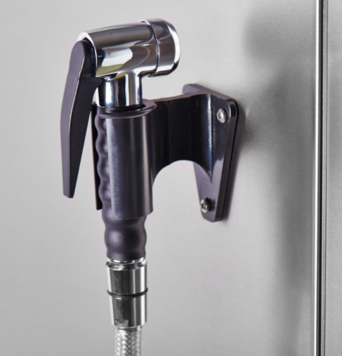- Двухходовый механизм открывания двери обеспечивает безопасность персонала от воздействия горячего пара.
