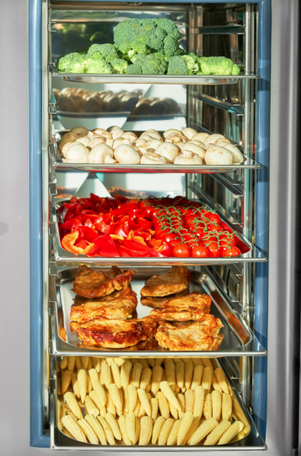 - Разогрев (+30...+160 °С). Нагрев происходит за счет одновременной работы воздушных ТЭН-ов и поступающего пара (количество поступающего пара больше, чем в комбинированном режиме). Режим используется для восстановления (разогрева) приготовленных ранее продуктов с сохранением всех их свойств и внешних качеств благодаря комбинации использования пара и создания определенной температуры. Разогретые продукты сохраняют внешний вид, запах, витамины, вес и выглядят так, как будто только что приготовлены.