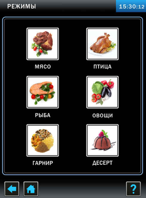 - Режим «Дельта Т» - автоматическое поддержание постоянной разницы между температурой внутри продукта и температурой в камере, позволяет деликатно готовить блюда при минимальных потерях веса и влаги.