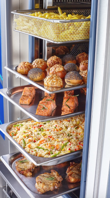 - Продольная загрузка позволяет использовать гастроемкости размеров GN 1/2, GN 2/3, GN1/3, GN 2/8.
