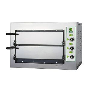 Профессиональная электрическая печь для выпечки пиццы, лепешек и т.п. Фронтальная облицовка из нержавеющей стали, огнеупорная жарочная поверхность, теплоизоляционное покрытие из минеральной ваты, 3 термостата для мод. MINI.