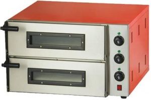 Печь для пиццы Viatto EP-218 - Передняя дверь и панель выполнены из нерж. стали. 2 камеры 500х500x115 мм, каждая камера на одну пиццу диаметром до 450 мм, 3 терморегулятора и 3 ТЭНа. Цвет: красный.
