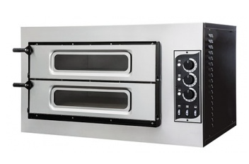 Печь для пиццы Gemlux GEP 2/50 VETRO используется на предприятиях общественного питания и торговли для выпечки пиццы или хлеба. Независимое управление верхнего и нижнего ТЭНов дает возможность выпечки как традиционной итальянской пиццы непосредственно на керамическом поду с более интенсивным нагревом сверху, так и классической американской пиццы на противне с более интенсивным нагревом снизу. Модель оснащена электромеханической системой управления и дверцами со смотровыми окнами. Корпус выполнен из окрашенной стали, передняя панель - из нержавеющей стали, поды - из керамики.