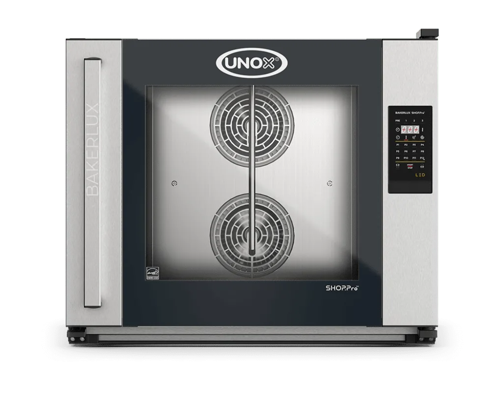 Печь конвекционная Unox XEFR-06EU-ELLV (VITTORIA) электрическая с пароувлажнением. Серия BAKERLUX SHOP.Pro™ с кнопочной панелью управления LED. 6 уровней 600х400 мм, распашная дверца, 2 реверсивных двух-скоростных вентилятора, память на 99 программ (до 3 этапов приготовления в каждой), двойное стекло двери, регулировка влажности с шагом 20%. Ручное открывание двери. Габариты: 800х829х682 мм. Напряжение: 380В (10,3 кВт). Для кафе, пекарен, кофеен, мини-маркетов и других предприятий общественного питания и торговли. Данная модель является более новой моделью предыдущей Unox XEFT-06EU-ELLV.