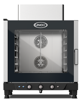Пекарский пароконвектомат - конвекционная печь UNOX XB613G с инжекторным парообразованием и механической панелью управления с возможностью настройки времени приготовления, температуры и степени пароувлажнения. Современные технологий UNOX, обеспечивают создание идеального микроклимата внутри рабочей камеры, сокращают потери веса и сохраняют полезные свойства продуктов. Печь XB613G предназначена в первую очередь для выпечки кондитерской и хлебобулочной продукции.
