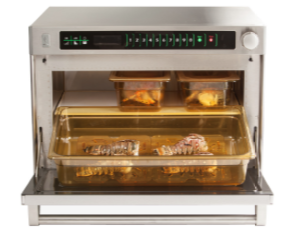 Печь рассчитана на приготовление от 200 блюд в день, что делает её подходящей для столовых, буфетов, фаст фуда, супермаркетов и других точек с высокой нагрузкой. Помимо стандартного разогрева, устройство может использоваться как стимер для приготовления на пару (при применении жаропрочных гастроёмкостей с крышкой). Важно: использование металлической посуды недопустимо и может привести к выходу оборудования из строя.